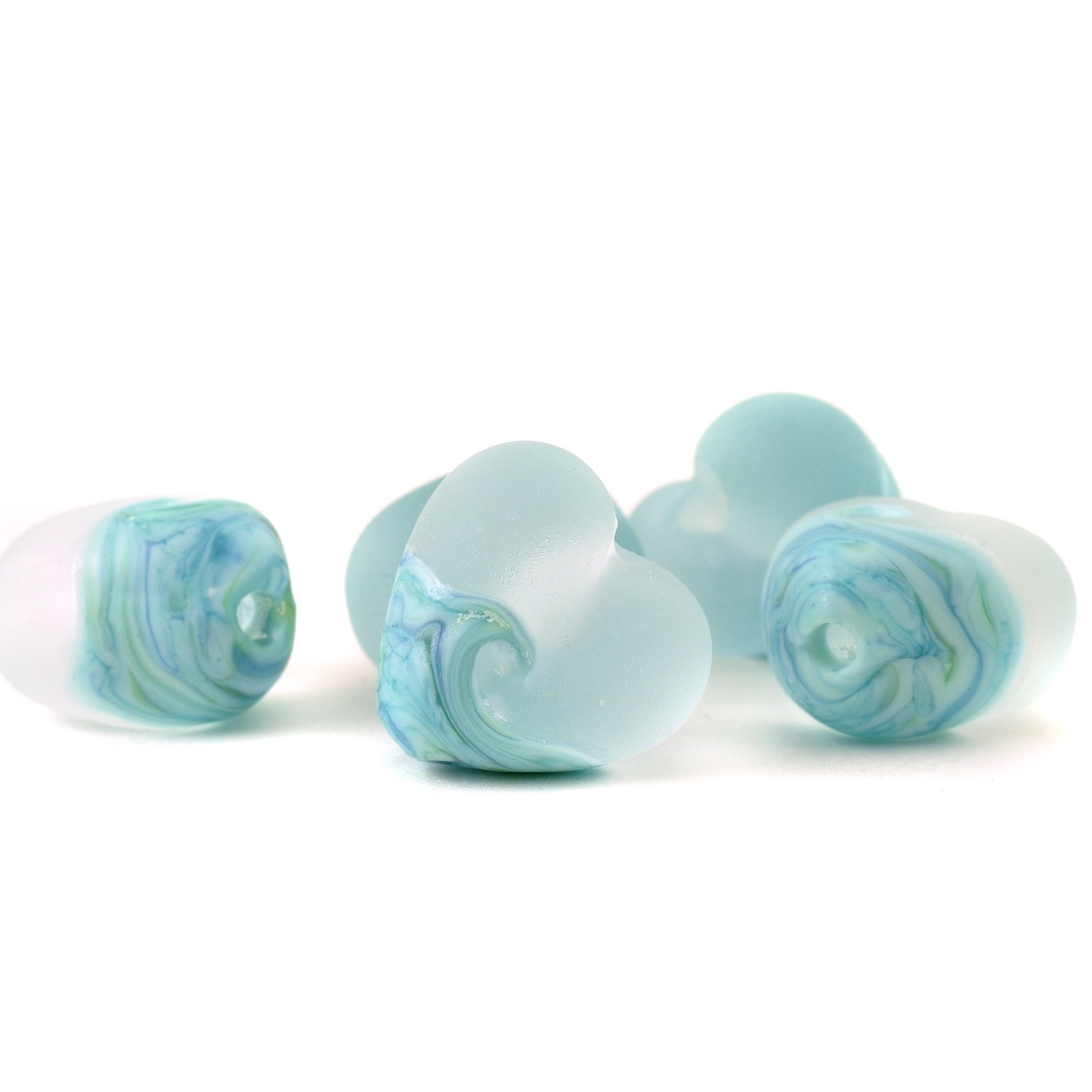 Small lampwork beads sold singly, in limited runs. Perfect for smaller necklaces or earrings, this is the place for little love hearts and pretty shells.